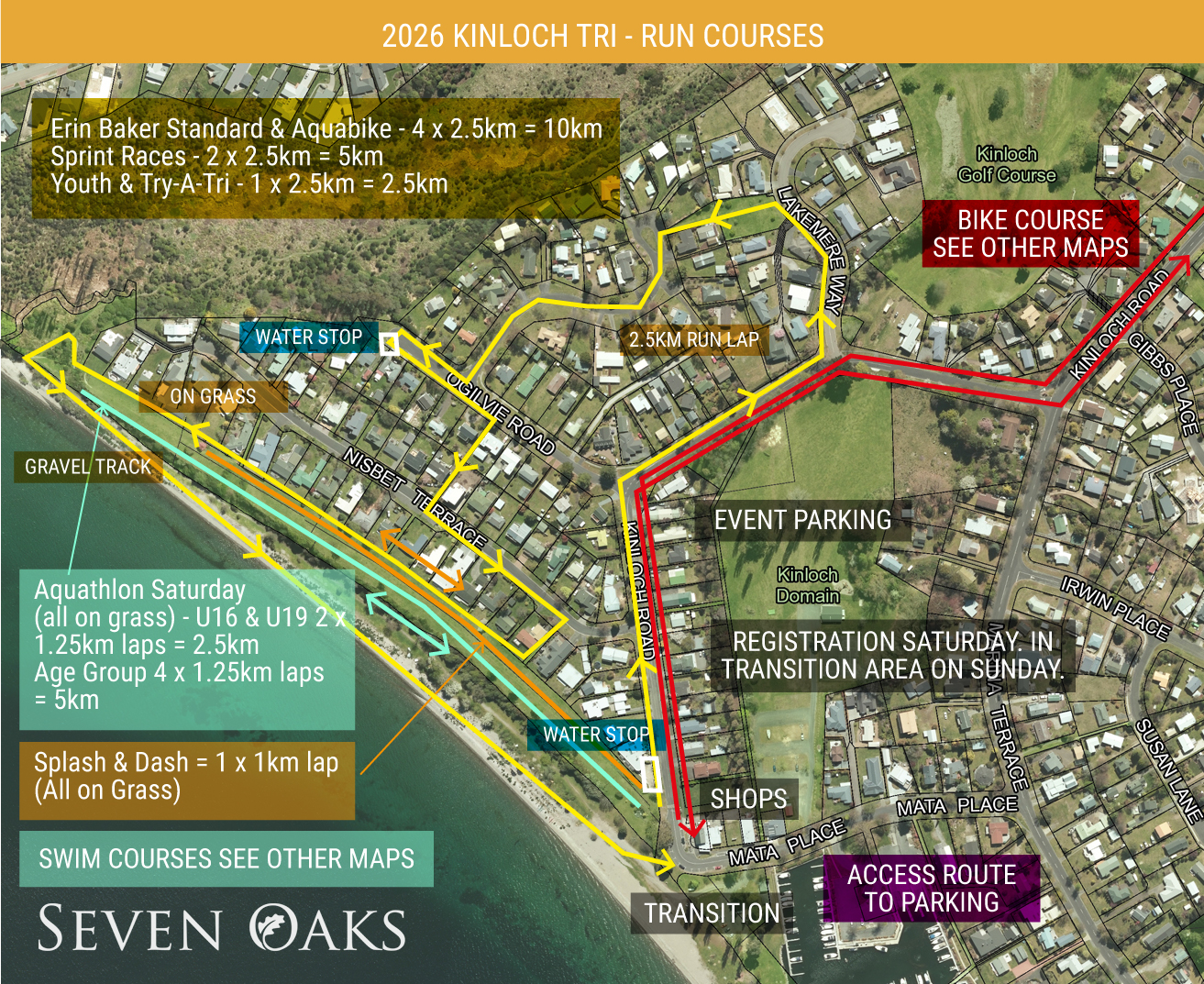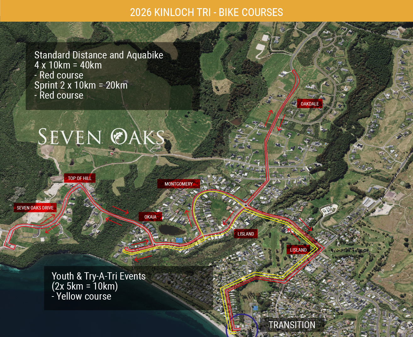 - The standard and sprint triathlon swims (including Aquabike) is a triangle held off the main Kinloch beach. The try-a-tri and splash and dash are held parallel to the beach in a line (shallow water)